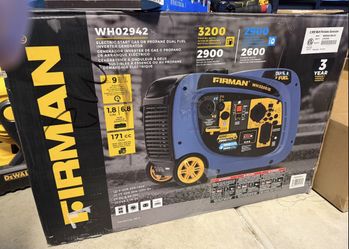 New Firman WH02942 Dual Fuel Inverter Generator 3200W Electric Start (Gas or Propane)$600Riverside, CA