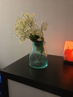Turquoise Vase With Fake White Flowers$10Laurel, MD