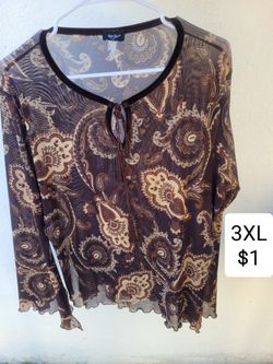Plus Size Blouse. Brown Top. Long Sleeve And Transparent. Blusa Cafe$1Huntington Park, CA