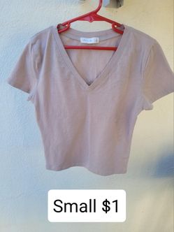 Tan V-neck Top. Croptop. Short Sleeves Blouse. Blusa$1Huntington Park, CA