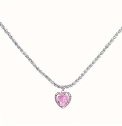 Pink Rhinestone heart necklace. Silver tone necklace. birthday, Women's necklace. Cadena$15Huntington Park, CA
