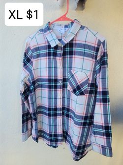 Checkered Blouse. Pink, Blue And White Shirt. Long Sleeve Collar Top. Button Up. Blusa$1Huntington Park, CA