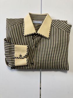 Stefano Ricci Dress Shirt / Beige color colorCuff and collar With Black and White Checkers Print $250Miami, FL