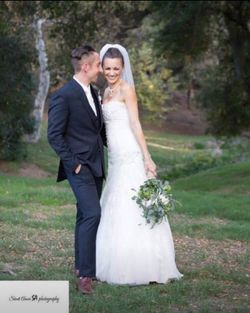David’s Bridal A-line Lace Wedding Dress with Side Split Detail- Underskirt & Veil Included-Size 2$175San Diego, CA