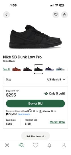 Nike SB Dunk Low Pro Triple Black Size 9M$240Orlando, FL