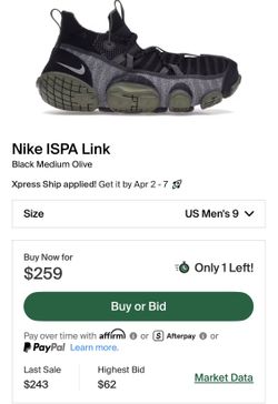 Nike ISPA Link Black Medium Olive Size 9 M$150Orlando, FL