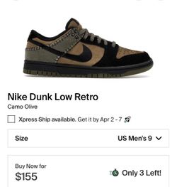 Nike Dunk Low Retro Camo Olive Size 9M$130Orlando, FL