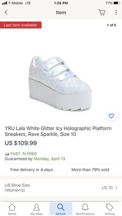 YRU Lala White Glitter Icy Holographic Platform Sneakers, Rave Sparkle, Size 7$80Jacksonville, FL