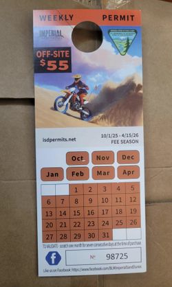 Headed to Glamis? I’ve got a brand new Imperial Sand Dunes Weekly Permit available! Perfect for off-roading, camping, and dune riding. ✔️ Weekly Off-$45Fontana, CA