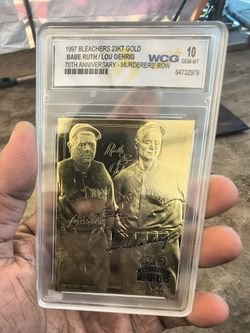 1997 Bleachers 23kt Gold Babe Ruth and Lou Gehrig trading card celebrating the "Murderers' Row" 70th anniversary $50Kerman, CA