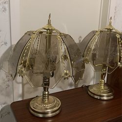 Vintage Brass Touch on/off Lamps w/ 6 Glass Etched Panels - $70 for both$70Mesa, AZ