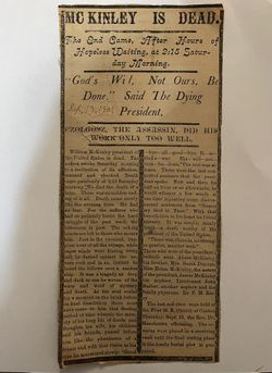President McKinley Death / Newspaper Article - September 21, 1901$40Miami, FL