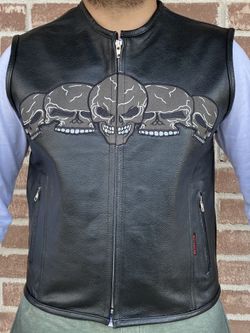 Mens Collarless Skulls Leather Motorcycle Biker Leather Vest Concealed Carry$44Austin, TX