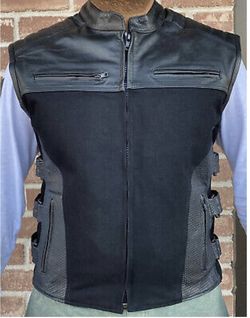 Men Motorcycle Leather Canvas Club Biker Style Vest Concealed Carry Pockets$49Austin, TX