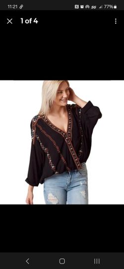 Free People Crescent Moon Embroidered Blouse Beaded Black Size M Boho Flowy$38Guyton, GA