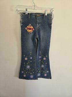 Vintage Mudd y2k lace up jeans size 7 juniors embroidered boho blue bell bottoms$125Guyton, GA