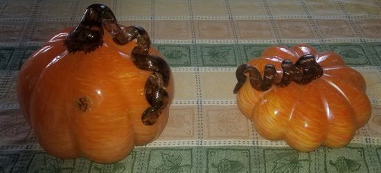 Orange Swirl Art Glass Ribbed Pumpkin Curly Brown Stem $70Tracy, CA