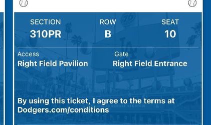 Dodger Tickets 8/13 $75 OBO$75Los Angeles, CA