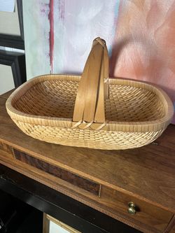 Vintage Hand Woven Willow Gathering Basket With 3 Wooden Handles$25Downers Grove, IL