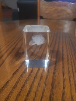 Laser Etched Lacey Flower art Glass Cube Art Deco. 3 X 2 Inches $15Riverside, CA