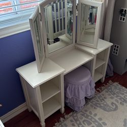 Pottery Barn Kids Madeline Play Vanity, Madeline Vanity Stool, Lavender Ruffle Slipcover$250Plano, TX
