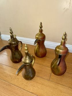 Vintage Middle Eastern Brass Dallah Coffee Pot Set (4) – Arabic Bedouin Islamic Decor – Large Medium Small$480Glendale, CA