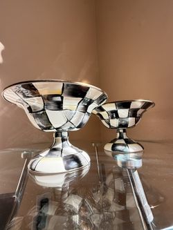 MacKenzie-Childs Courtly Check Pedestal Bowls – Set of 2 – Farmhouse Kitchen Decor - 5” tall / 7” Diameter$120Glendale, CA