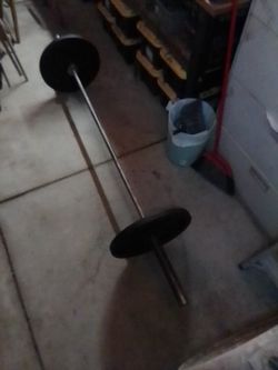 Two 45Disk Weights With 2-in Center l Plus Bar 7 Ft Long Takes 2-in Center Weights Bar Alone Weighs 35 Lb Plus Two 45 Disc That's 125 Lb All Together$80San Bernardino, CA
