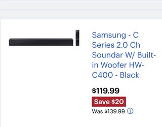 Samsung - C Series 2.0 Ch Soundar W/ Built-in Woofer HW-C400$80San Diego, CA