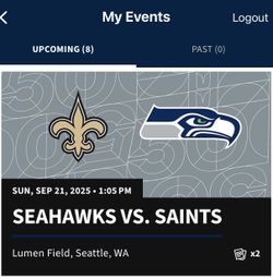Seattle Seahawks vs New Orleans Saints – Toyota Fan Deck Section 321, Row B (2nd Row), Seats 10 & 11$450Kirkland, WA