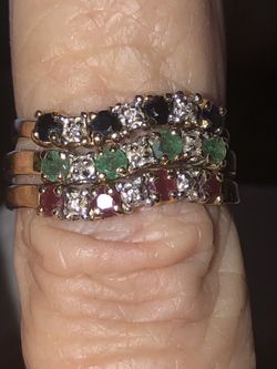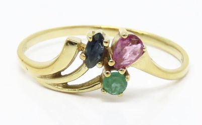 💕 14K Yellow Gold Ruby, Emerald & Blue Sapphire Ring Size 7.5$175Riverside, CA