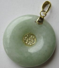 💜 14K Yellow Gold & Jade Fine Chinese Celadon Lucky Pendant$140Redlands, CA
