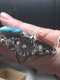💕 Rare Verna Craig 925 Sterling Silver Navajo Coral And Turquoise Ring Size 8$400Redlands, CA