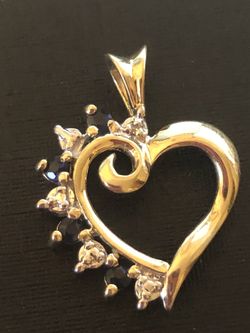 💕 10K Yellow Gold Blue Sapphire & Diamond Heart Pendant 7/8” Long$155Redlands, CA