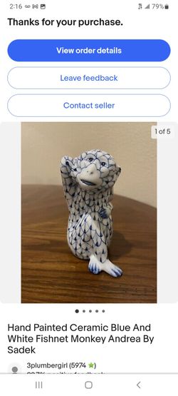 Herend Style Blue And White Porcelain Monkey Hand Painted By Andrea By Sadek $85Miami, FL