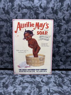 Antique reproduction Auntie Mays Embossed Tin sign Baby Soap Baby in tub The Antique reproduction Auntie Mays Embossed Tin sign features a charming d$40Fontana, CA
