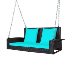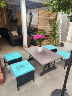 4 Brown Wicker Ottoman With Aqua Cushions $25Huntington Park, CA
