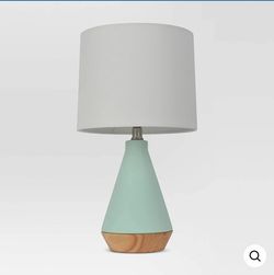 2 TAPERED CERAMIC WITH WOOD DETAIL TABLE LAMP - PROJECT 62 AQUA