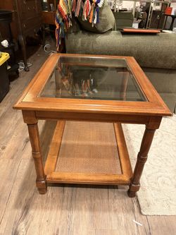 Vintage Wood Side Table Glass Top Woven Shelf$60Tacoma, WA