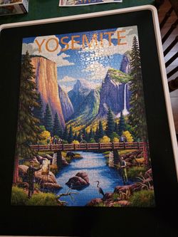 BOARDWALK Puzzle Company 1000pc Jigsaw Puzzle" YOSEMITE " POSTER INCLUDED. DOG AND SMOKE FREE HOME. COMES IN STURDY CASE. PUT TOGETHER ONCE.$12Glen Ellyn, IL