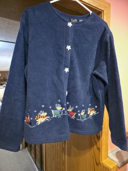 Blue C&B Sport Holiday Top With Ornate Snowflake Buttons And Holiday Designs. Sz L$15Glen Ellyn, IL