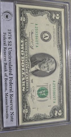 1976 2.00 Uncirculated Frederal Reserve Note. Mint In Holder. $50Dillsburg, PA