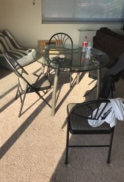 Glass table with 4 foldable chairs$120Norfolk, VA