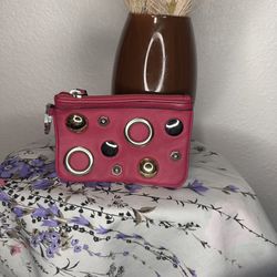 Betsey Johnson Cow Leather Studded Zip Pink Cosmetic Bag Y2K$9Harlingen, TX