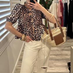 Leopard Balloon Arm Poplin Tie Up Blouse $30Los Angeles, CA