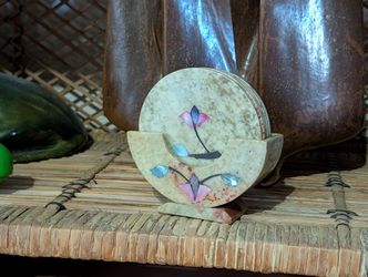 Vintage Pietra Dura Marble 6 Coaster Set – Hand-Inlaid Mother of Pearl & Semi-Precious Stone – 7 PC $45Peoria, AZ