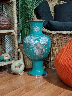 Vintage 19.5" Korean Mother of Pearl Brass Vase - Teal Peacock$135Peoria, AZ