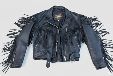 Vintage Pro-Rider Black Leather Fringe Motorcycle Jacket Braided Western Biker 14 Women's XL Mens M$135Peoria, AZ