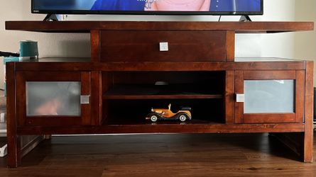 Wooden TV stand dark-stained wood, likely cherry or mahogany veneer$300Port Richey, FL