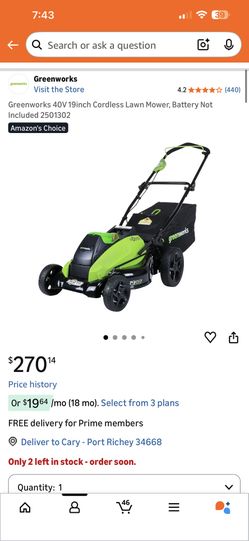 $55 Greenworks 40V 19-inch Cordless Lawn Mower $55Port Richey, FL